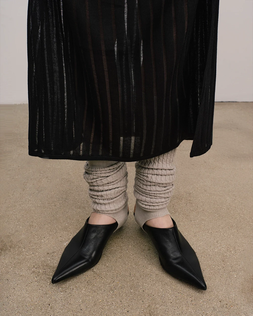 Merino wool stirrup leg warmers. A functional winter accessory that will keep you warm even in the coldest weather. Crafted from exceptionally soft wool with a textured pattern, they feel wonderfully snug against the skin. The integrated stirrups on the inside ensure a secure fit over your footwear.