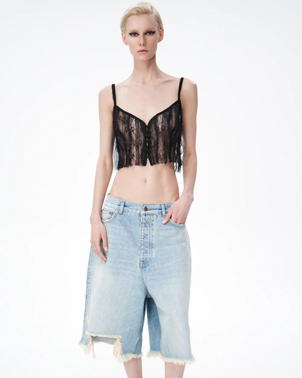 Straight silhouette boyfriend shorts made of premium denim with a raw bottom