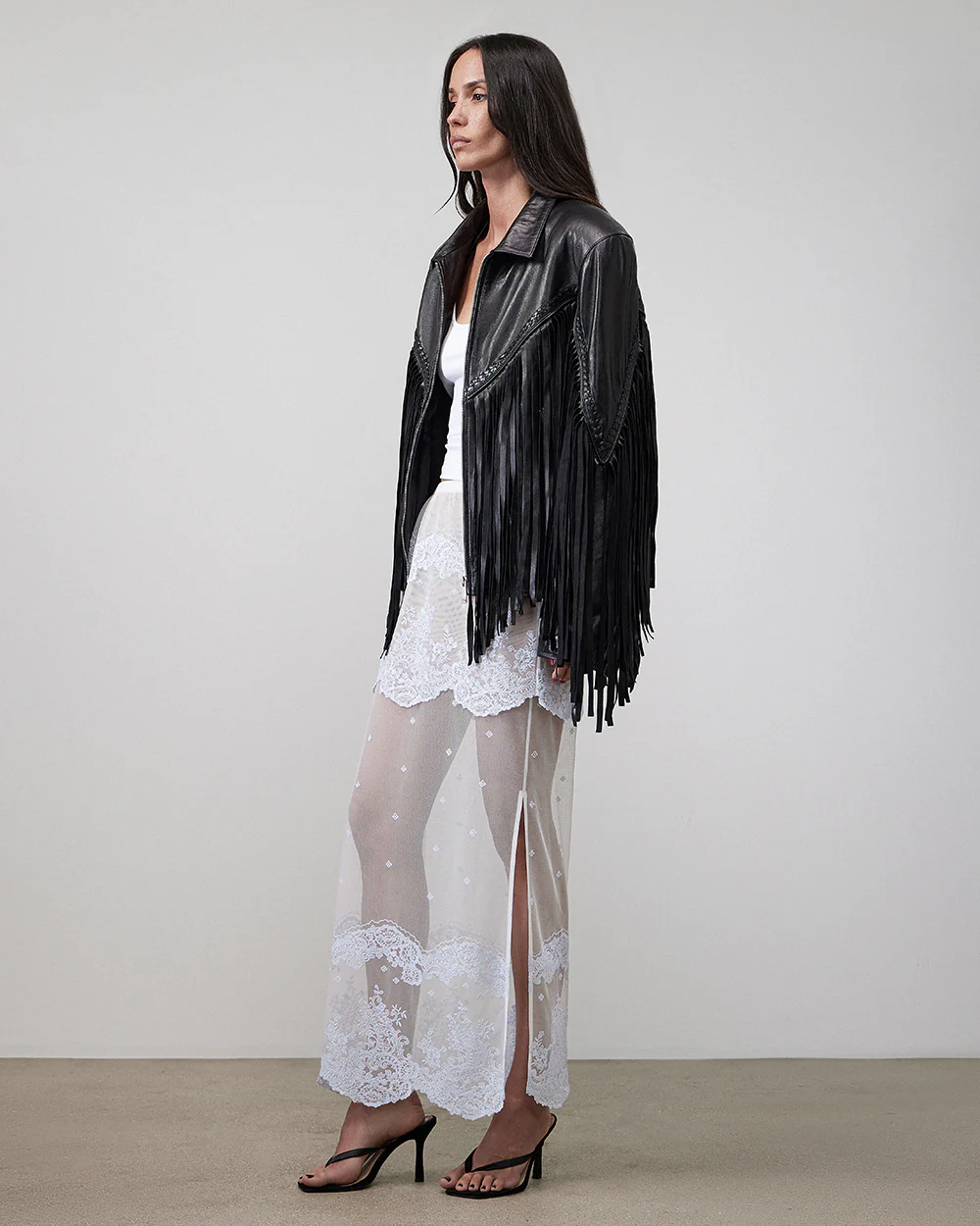 Sheer lace ankle-length skirt made of lightweight cotton blend fabric. Feather-light and breathable, perfect for light summer outfits. The top layer features an additional sheer edged overlay to reduce transparency where needed. An elastic waistband ensures a flattering fit tailored to your body shape and style preferences.